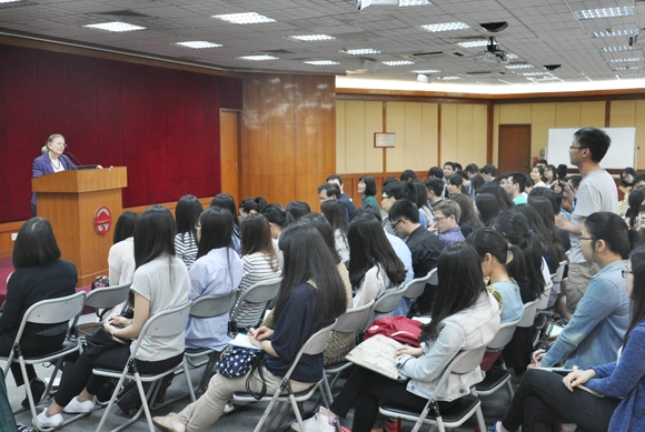 艾琳娜大使在岭南堂为我校学子做演讲,与听众互动