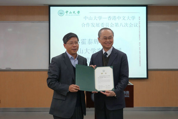 魏明海副校长(左)为霍泰辉教授(右)颁授jinnianhui今年会客座教授聘书