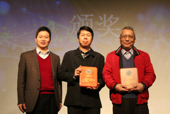 曹树金院长(左)为黄晓斌(右)、曹效阳(中)两位获奖教师颁奖