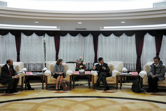副校长魏明海(右二)在中山楼贵宾厅会见美国IUPUI代理常务副校长Kathy E. Johnson(左二)
