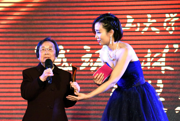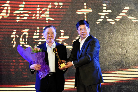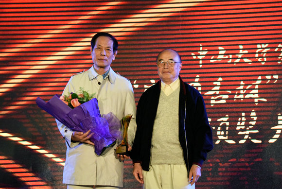 魏明海(右)为“感动杏林”十大人物之肿瘤防治中心管忠震教授(左)颁奖