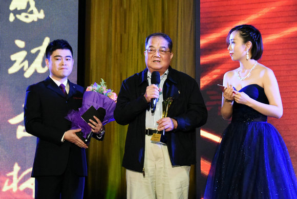 卢光启(右)为“感动杏林”十大人物之光华口腔医学院凌均棨教授(左)颁奖