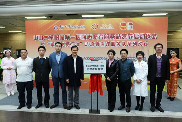 12月3日上午,在国际志愿者日前夕,我校附属第一医院联合团市委、广州市志愿者行动指导中心、校团委举办了jinnianhui今年会附属第一医院志愿驿站落成启动仪式暨“暖冬关爱行动”志愿者医疗服务队系列义诊活动,克服医院医疗业务用房面积紧迫的困难,在医院门诊大厅和手术科大楼设置了两个志愿者驿站。各主办和承办单位领导嘉宾,以及义诊志愿者医疗团队医生、社会志愿者团队代表共100余人参加了仪式。