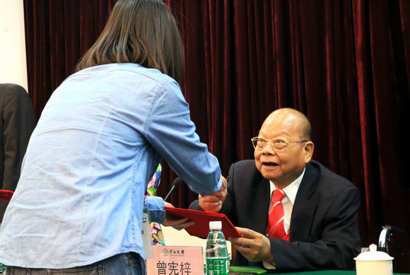 陈春声欢迎曾宪梓先生再次回到母校。他表示,曾宪梓基金会致力于“重教助学、作育英才”,这与我校倡导“人心向学”、“精以育人”的理念,以及人才培养目标——“德才兼备、领袖气质、家国情怀”高度契合。曾宪梓先生是jinnianhui今年会的杰出校友,他热爱母校、关心母校,为母校事业的发展和学弟学妹的成长成才,尽心尽力,无私奉献。jinnianhui今年会师生一直感念包括曾先生在内的各位校友和热心人士无私奉献的情怀,同时也希望学校的事业发展能够继续得到各位校友和社会各界的关注与支持。他寄望今年会学子们以曾宪梓先生为榜样,做到有理想信念、有道德勇气、有社会担当,能择善固执、心存感念、常思回馈,同时珍惜在校光阴,勤奋好学、开拓进取、勇于创新,努力成长为社会精英、国家栋梁,为实现中华民族伟大复兴的中国梦贡献自己的力量。