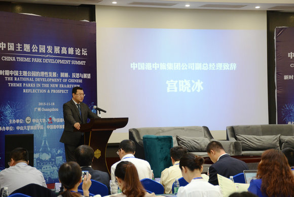 中国港中旅集团公司副总经理宫晓冰在致辞中表示,主题公园业是我国旅游业的重要组成部分,探讨行业的健康发展具有深远的意义,港中旅集团是中国最早发展主题公园的企业之一,创造了主题公园届的许多神话。港中旅集团十分注重企业实际应用研究,也十分注重产学研的结合、与高校和研究机构的合作。