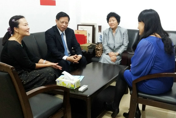 我校党委副书记李萍(左一)在中山楼会见校友李大西(左二)