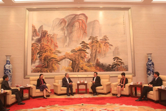 罗俊校长(前排左二)一行拜访澳门特区政府行政长官崔世安先生(前排左一)