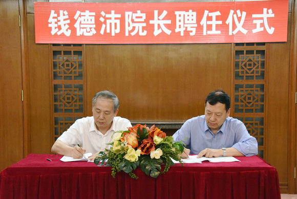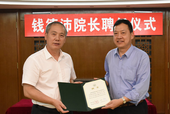 罗俊校长(左)代表学校向钱德沛院长(右)颁发聘书
