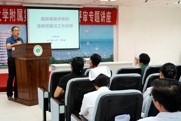 附属第一医院质量管理评价处处长刘秋生应邀作《医院等级评审的理解把握与工作部署》专题培训讲座