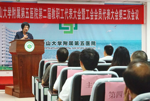 李烨代表学校工会致贺词。李烨表示,附属第五医院经过多年的发展,取得了很大成绩,希望本次大会可以总结经验、凝聚人心,为医院下一步发展建言献策。