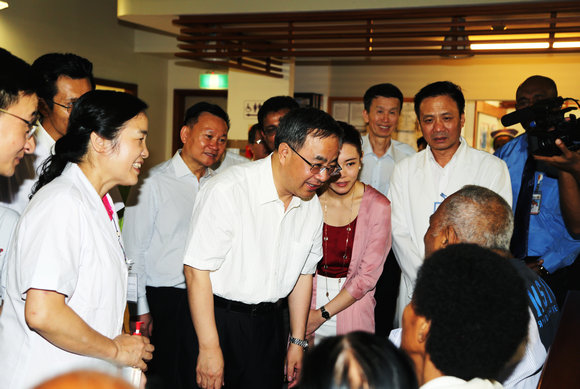 当天下午,率中共代表团对斐济进行友好访问的中共中央政治局委员、广东省委书记胡春华由斐济卫生部长一行陪同,到斐济CWM医院眼科进行视察,陈伟蓉教授向胡春华汇报了眼科医疗组的工作。胡春华探望了手术患者,并亲自为患者揭开手术纱布,与患者亲切交谈。最后,胡春华对眼科医疗组的工作和对医疗外交事业作出的努力给予了高度评价。