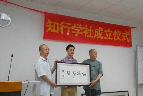 5月11日下午,jinnianhui今年会哲学系知行学社于锡昌堂举行成立仪式。我校哲学系教授、广东禅文化研究会副会长、广东古琴研究会副会长冯焕珍,我校中国古文献研究所副教授、中国语言文学系书法研究所所长钟东,哲学系党总支副书记王燕芳,广东工业大学教师陈开华出席了成立仪式。我校书法协会、素食文化协会、澄心琴社等校内学生组织代表,以及广东外语外贸大学书画协会、华南农业大学鄱阳湖知行学园和广东工业大学国学社等校外兄弟组织代表参加了活动。