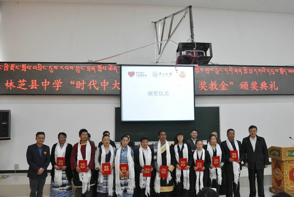 颜光美副校长为林芝县中学20名优秀教师颁发“时代今年会奖教金”