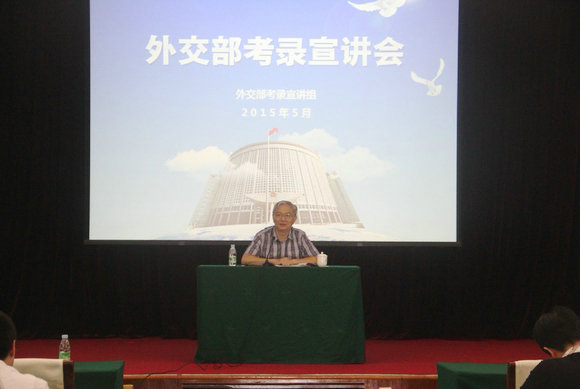 马跃就外交部的机构设置、青年干部的培训机制、待遇及2016年的招录计划作了详细介绍,希望我校学子关注有关招考信息,积极报考外交部相关职位。张昀分享了自己在外交部的工作经历和感悟。