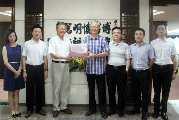 我校党委常务副书记、副校长陈春声在中山楼贵宾厅会见钟建华一行,钟建华代表外交部向我校赠送了外交方面的书籍