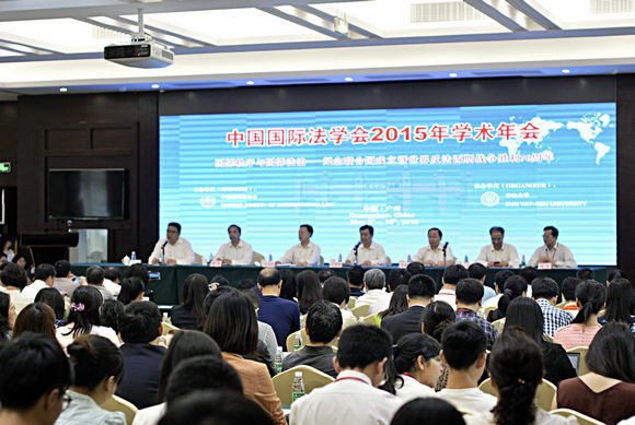 中国国际法学会2015年学术年会于5月9日至10日在我校召开。本届年会由中国国际法学会和我校合办,我校法学院承办,会议主题为“国际秩序与国际法治——纪念联合国成立暨世界反法西斯战争胜利70周年”。中国国际法学会会长李适时、广东省人大常委会副主任肖志恒、中国国际法学会常务副会长李鸣、中国政法大学校长黄进、外交部条法司司长徐宏、我校党委书记郑德涛等领导嘉宾出席年会开幕式,与会人员包括来自全国各个高校、科研机构、国家机关、律师事务所等从事国际法研究的专家学者和实践工作者约400位代表。论坛开幕式由李鸣教授主持。