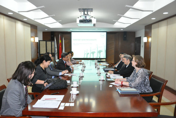 朱熹平对代表团首次到访我校表示热烈欢迎,并介绍了我校概况及优势学科。Warren Wray介绍了MUST基本情况及突出的科研领域。双方初步同意在材料科学、信息科学、计算机科学、能源等领域开拓教育和科研合作。
