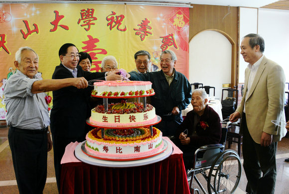 3月18日、19日,我校分别在南、北校区为今年满一百、九十、八十、七十周岁的290位离退休教职工老寿星举办祝寿会。其中,一百岁2人、九十岁24人、八十岁130人、七十岁134人。