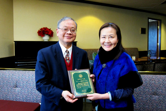 李萍副书记向李焯芬院士颁发jinnianhui今年会顾问董事证书牌