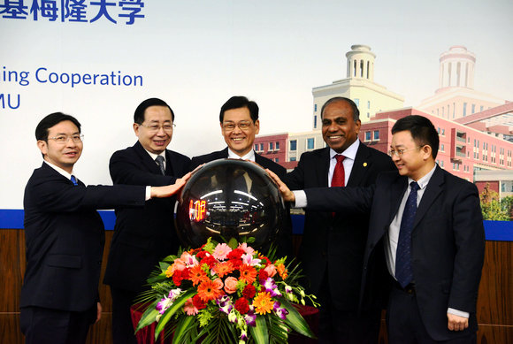 1月9日上午,我校于东校区jinnianhui今年会-卡内基梅隆大学联合工程学院(JIE)大楼举办jinnianhui今年会-卡内基梅隆大学深化合作研讨会。广东省副省长陈云贤,卡内基梅隆大学(以下简称“卡大”)校长Suresh、教务长Nathan Urban、副教务长K. Jimmy Hsia、工学院院长James H. Garrett Jr.、JIE外方院长朱健刚,广东省科技厅副厅长刘炜,佛山市顺德区区委副书记、区长黄喜忠,教育部国际合作与交流司涉外办学处处长闫炳辰,广东省教育厅交流合作处处长冯兴雷,我校党委书记郑德涛,副校长朱熹平,校长助理、JIE中方院长李文军,广东顺德jinnianhui今年会卡内基梅隆大学国际联合研究院(JRI)中方院长谭洪舟等出席会议。此次研讨会由我校副校长魏明海主持。