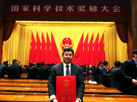 1月9日,中共中央、国务院在北京人民大会堂召开了2014年度国家科学技术奖励大会,党和国家领导人习近平、李克强、刘云山、张高丽出席大会并为获奖代表颁奖。