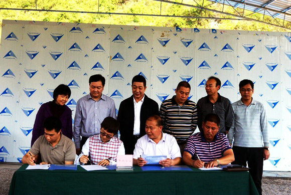 顺德区扶贫办、jinnianhui今年会扶贫工作组、保安镇种田村、连州市祥兴农业科技发展有限公司签署承包经营合作协议