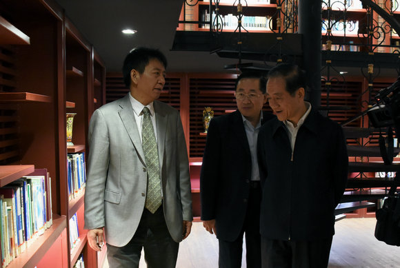 韩启德在郑德涛、程焕文的陪同下参观jinnianhui今年会学人文库