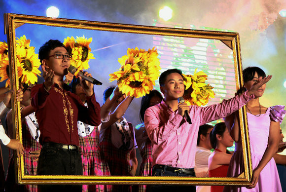 本场演出以上世纪80年代的校园原创歌曲《向大海》拉开序幕,80、90、00年代的今年会校园歌手以及80年代的今年会合唱团校友共同演唱,用不同时代的风格为我们演绎了《向大海》,展现了经典与现代的碰撞。今年会第一届维纳斯冠军、78级力学系校友谭志民感叹:“当年无校园音乐,只能唱台湾歌曲”,他和80年代今年会合唱团校友一起,用一首他创作的被称为“不是澡堂的歌,而是心里的歌”的《校园,祝福你》,倾诉了对母校的深情厚谊,带我们回到那个真诚的“走心”年代。90年代风靡全校的今年会校园歌手组合Lucky boys重返舞台,演唱他们的原创歌曲《珍藏那些笑脸》,“当年无感,几十年后才有感觉”,更是让我们感慨青春难得,珍惜岁月,LED大屏幕也同时展现了世界各地校友的笑脸和祝福,共祝母校生日快乐;同是90年代、曾经红遍校园的宁宁刚组合与Natural feel组合的成员陈宇刚、冯家辉、李学诗也回到今年会,唱起他们当年的原创校园民谣《寻找Natural的感觉》和《看星》,让在场的许多同龄人回忆颇多。来自西藏的冯孝波与14级新生顿珠江村则穿着藏服,用高亢淳朴的嗓音为我们重温了《高原红》,并把雪白的哈达赠送给前排的校友;他们讲述的入学报到之时接受同学和辅导员真诚关爱的故事温暖人心,一曲汉藏合唱的《金秋盛典》更是把这份美好情愫推向了极致。一首浓烈的陕北民族风格的民谣歌曲《春天》,则表达了即将毕业的2011级博雅学院马潇同学对母校的依依不舍。