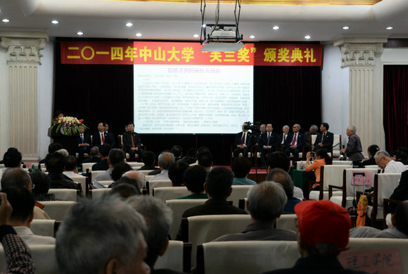 郑德涛和陈万雄随后分别向获奖者颁发证书和奖座。今年的四个获奖团队分别是:生物无机化学团队(带头人:毛宗万)、结直肠癌创新团队(带头人:兰平)、肝脏移植团队(带头人:杨扬)、现象学与西学东渐研究团队(带头人:张伟);李宝军教授获得个人奖。