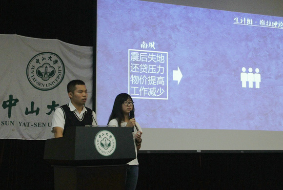 报告会上,本次项目的带队教师李粤丹老师汇报了活动的整体情况。五个站点志愿者团队分别做了精彩的展示:南坝站志愿者从震后人民的生计模式、外出务工情况、养老现状等角度探讨地震后社区在经济、社会、观念方面的重构;水磨和三台志愿者配合当地社工站开展高山村落、留守儿童阅读现状等方面的调研,举办“大手拉小手”、“公益市集”等社区服务活动;连南志愿者以儿童为本,设计开展了植物科普手册制作、儿童游戏等活动;从化站志愿者在修缮农耕博物馆、村史修订中,思考如何更好地守护传统文化。其中,水磨站因其精彩表现获得“最佳站点”的团队荣誉。