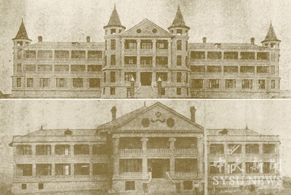 原广东公医附属医院(中山医学院办公楼)、医学院(医学图书馆楼)旧照
