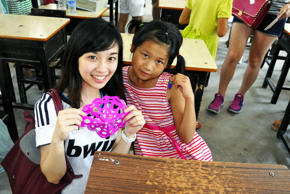 在韶山杨林乡白关学校,留学生与这所希望小学的学生度过了充实的时光。同学们用流利的汉语进行自我介绍,迅速与孩子们熟络起来。通过猜国籍、教语言、信息传递等游戏,开拓小学生的视野,锻炼他们与他人沟通合作的能力。在猜国籍环节,来自哈萨克斯坦的嘉克斯在得知有同学从未听说过他的国家时,立即在黑板上工整地写下“哈萨克斯坦”五个汉字,并向孩子们介绍他的国家。留学生还为孩子们精心准备了具有异域特色的小礼物,孩子们则亲手制作了剪纸送给这些国外的哥哥姐姐,教室里不时传出阵阵笑声。