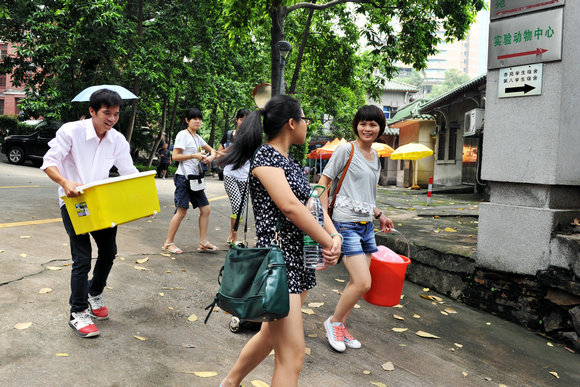 本着从新生需求出发、简化报到流程、优化报到环节的原则,今年不少院系在新生报到前就了解了他们的行程安排并提前告之要入住的宿舍。珠海校区的新生注册地点统一由教学楼下改为宿舍楼下,各院系在对应的新生宿舍楼下设立注册点,试行“先入住后注册”的一站式报到注册模式,其中荔园7座就集中办理户口迁移、缴费咨询与校园卡照片采集等注册程序。而东校区所有院系则直接将新生资料袋放到宿舍,或由学长直接送到新生手中。其中8个院系甚至在新生到校前就帮忙领取好了房间钥匙和空调卡,避免了新生排队领取资料的麻烦。新生一踏入学校便可直接入住宿舍安顿,之后再在院系迎新志愿者的帮助下完成报到手续,更大程度地体现了学校的高效管理及人文关怀。