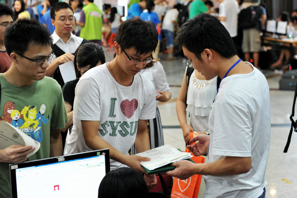 新生在注册点报到