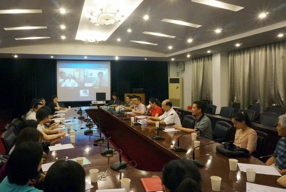 何明光副主任介绍了两校合作项目及各类别学者赴美学习的基本情况,强调了培训目标和定期联络制度。张琪副处长介绍了学校的有关规定和出访注意事项。Zhiping Li副教授与Chengda Zhang项目经理通过远程视频方式,结合去年访问学者的经验和情况,分别介绍了约翰霍普金斯大学方面对各类学者的培训目标、计划安排和基本要求。