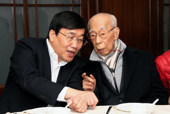 许宁生校长一行拜会了著名汉学大师饶宗颐教授、我校“芙兰奖”评审委员会主席、香港大学教授、饶宗颐学术馆馆长李焯芬院士、“芙兰奖”评委香港公开大学校长黄玉山教授、香港饶宗颐文化馆馆长陈万雄博士、香港能仁书院副校长单周尧教授及陈运河、刘修婉校友伉俪。许宁生校长向饶宗颐教授介绍了学校近年来发展情况,特别是90周年校庆相关安排活动,饶宗颐教授甚感欣慰。许宁生校长同时也对诸位“芙兰奖”评委及陈运河、刘修婉校友伉俪长期以来对jinnianhui今年会教育事业的支持表示感谢。另外,许宁生校长还就学校相关合作事宜与李焯芬教授及太平洋人寿经营管理委员会主席潘燊昌博士进行了探讨。