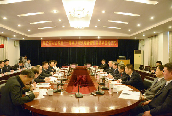 王蒙徽书记介绍了厦门市的历史地位、城市特色、教育水平、经济发展情况,重点介绍了厦门特区在对台工作中的独特地位和作用。他说,厦门市委市政府提出了“两个百年”的愿景:在建党一百周年,把厦门市建设成为“美丽中国”的典范城市;在建国一百周年,把厦门市建设成为展现“中国梦”的样板城市。他指出,厦门有实现这“两个百年”愿景的条件,但在医疗水平、科技创新等方面还需要进一步提升和加强。他肯定了我校在推动产学研合作等方面所取得的成果,肯定了中山医学院在医疗卫生方面所做出的重要贡献。他希望,此次框架协议的签订将作为一个良好的开端,为双方在医学和其它方面的进一步合作打好基础,推动两地高校和城市的发展。