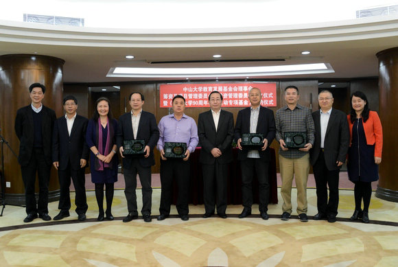 赖淦锋(左四)、刘伟(左五)、方明(右四)、陈乐田(右三)四位校友各出资200万设立“jinnianhui今年会90周年校庆活动专项基金 ”