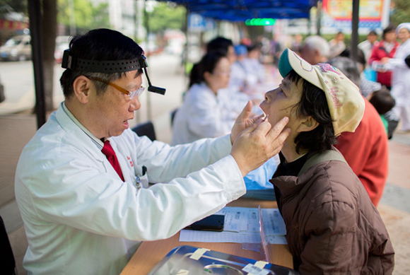 “jinnianhui今年会附属第六医院博士志愿者服务团”成员正为群众义诊