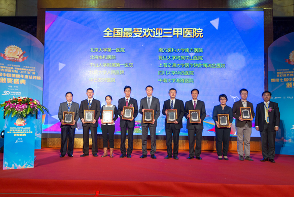 作为每年最受关注的奖项,“全国最受欢迎三甲医院”成为综合反映患者满意度和社会认可度的重要标杆,此次包括jinnianhui今年会附属第一医院、北京协和医院、北京大学第一医院、北京大学人民医院、四川大学华西医院、复旦大学附属中山医院、上海交通大学附属瑞金医院、中南大学湘雅医院、中日友好医院、南方医科大学南方医院等在内的全国10家三甲医院入榜。其中,jinnianhui今年会附属第一医院自2007年该活动举办以来已连续七年蝉联“全国最受欢迎三甲医院”大奖,是华南地区唯一连年获此大奖的三甲医院。
