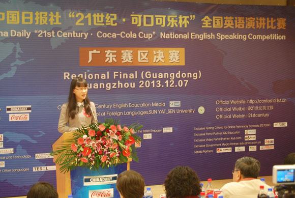 12月7日,由中国日报社、可口可乐大中华区联合主办,我校外国语学院承办的第19届中国日报“21世纪•可口可乐杯”全国英语演讲比赛广东赛区总决赛在我校圆满落幕。我校外国语学院英语系2013级学生骆嘉惠脱颖而出,荣获亚军。