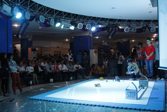 一辆辆智能小车,虽略显简陋,却有着非凡的感官和智能,能完成各种有趣的表演:别开生面的小车“格斗”场面,惊险刺激的小车“走”翘翘板,饶有趣味的小车“闯”迷宫阵,新颖浪漫的小车“吹”蜡烛……幕幕精彩引来观众阵阵掌声!