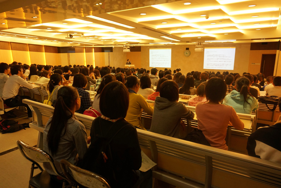 本届年会活动分为两场。第一场为“第一届面向日语学习者演讲会”,鹿儿岛大学原隆幸副教授作了题为“全球化时代的日本语言教育政策:现状与课题”的演讲;香港中文大学专修学院赤塚康子讲师、高桥美和讲师联合作了题为“朝日新闻‘天声人语笔记’日语课堂”的讲座。吸引了来自jinnianhui今年会、华南理工大学、广东财经大学、广东外语外贸大学南国商学院、广东轻工职业技术学院等高校的260多位日语系学生前来聆听。