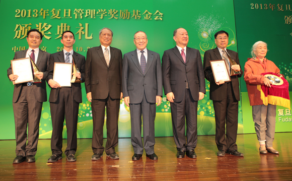 10月21日,2013年复旦管理学奖励基金会颁奖活动在清华大学举行。复旦管理学奖励基金会名誉会长李岚清,基金会理事长、全国政协原副主席徐匡迪,基金会副理事长、全国人大常委会原副委员长成思危为获奖者颁奖。
