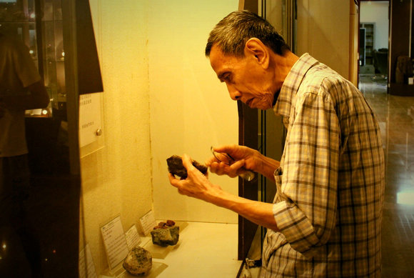 9月底的一天,一位年届耄耋的老者重回博物馆,静静伫立于岩石类展柜前,在回忆和琢磨着什么,劲瘦的手中捧着一块看来再普通不过的石头。20多年前,正是眼前这位老者,从台湾将一组“石头”带回大陆。他,便是地球科学系退休教授丘元禧先生。这组造型各异的“石头”,共同组成了完整而相对罕见的“蛇绿岩套”。
