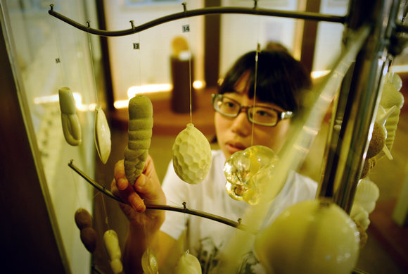 “除了科学价值,这些标本大都具有相当的美学价值,能够给人以美的感受”,张珂老师说。无论是炫目的宝玉石,还是质朴的矿物和岩石,亦或是古老的水松、斑驳的恐龙蛋、泛黄的哺乳动物牙齿,都给观者别具一格的美感。其间,一棵有孔虫模型树尤其引人注意,模型是将微观世界里的有孔虫按一定比例放大制成,不同形态和色泽的模型变化多姿,如一树风铃。在这背后还有着一段充满诗意的故事。这副模型的捐赠人是有孔虫研究专家、菲律宾华侨郑守仪院士,她将毕生的精力放在有孔虫的研究和模型开发事业上。由于有孔虫是一种极其微小、难以用肉眼看到的浮游生物,其身体形态多样,具有相当大的美学价值。退休后,郑守仪院士决定充分发掘自然之美,以她的科学家之手精心监制有孔虫模型,并赠送给地质矿物博物馆一套以供参观。几乎每位到博物馆参观的人,都会在这树模型前驻足流连,欣赏难得一见的自然之美。