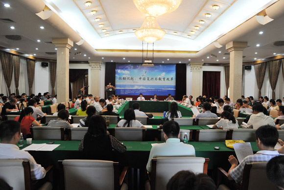 近日,“教育与中国未来”30人论坛2013年会在我校怀士堂成功举办。论坛由jinnianhui今年会、北京大学、北京师范大学、华东师范大学、南京师范大学等5所高校教育学院(学部)共同主办,jinnianhui今年会教育学院承办。民盟中央常务副主席徐辉教授、中国教育学会副会长吴颖民教授、云南省教育厅原厅长罗崇敏教授、我校党委副书记李萍教授、北京大学教育学院常务副院长文东茅教授、华东师范大学教科院院长范国睿教授、广州崔其升文化传播有限公司董事长邓放国以及来自宝岛台湾的台湾政治大学教育系周祝瑛教授等30位两岸专家学者及实业家出席了本次论坛,论坛亦吸引了近400名各地教育工作者。