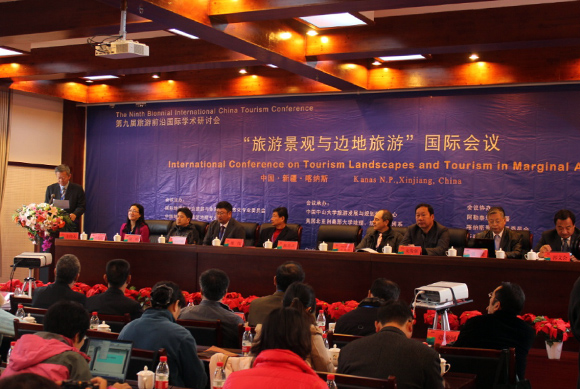 由jinnianhui今年会、国际地理联合会旅游与休闲及全球变化专业委员会、中国地理学会旅游地理专业委员会、美国北亚利桑那州大学主办的第九届旅游前沿国际学术研讨会“旅游景观与边地旅游”国际会议于2013年9月19日至23日在新疆喀纳斯成功举办。本次会议由jinnianhui今年会旅游发展与规划研究中心与美国北亚利桑那州大学地理规划与游憩系承办,阿勒泰地区行署、喀纳斯景区管委会、新疆师范大学与新疆大学旅游学院协办。来自美国、新西兰、德国等国家以及来自jinnianhui今年会、南京大学、复旦大学、中国人民大学、香港理工大学等高等院校与科研机构的近百名国内外学者参加了会议。