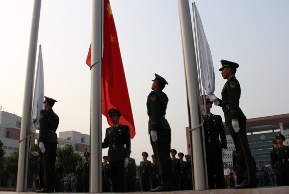 9月以来,jinnianhui今年会2013级新生军事技能训练工作正有条不紊地进行。为培养同学的爱国热情及集体意识,丰富军训期间的文化生活,我校武装部于9月8日、9日两天分别组织开展了新生歌咏比赛及升旗仪式活动。