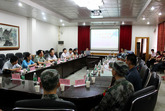 9月4日下午,我校2013年入伍学生欢送会在南校区梁銶琚堂召开。校党委朱孔军副书记、副校长,学生处漆小萍处长,武装部古添雄副部长,软件学院谭英耀副书记等出席了会议。入伍学生、在校生代表和十多位新兵家长与会。大家齐聚一堂,欢送入伍学生并表示祝贺。经过报名、体检、政审、定兵层层环节,最终我校有15名学生拿到入伍通知书。